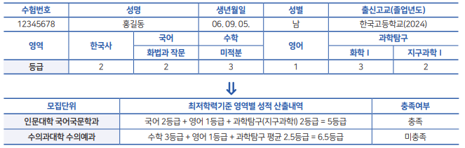 ※ 약학대학, 의과대학, 수의과대학은 과학탐구 2과목을 반드시 응시하여야 하며, 취득 등급의 평균을 반영함