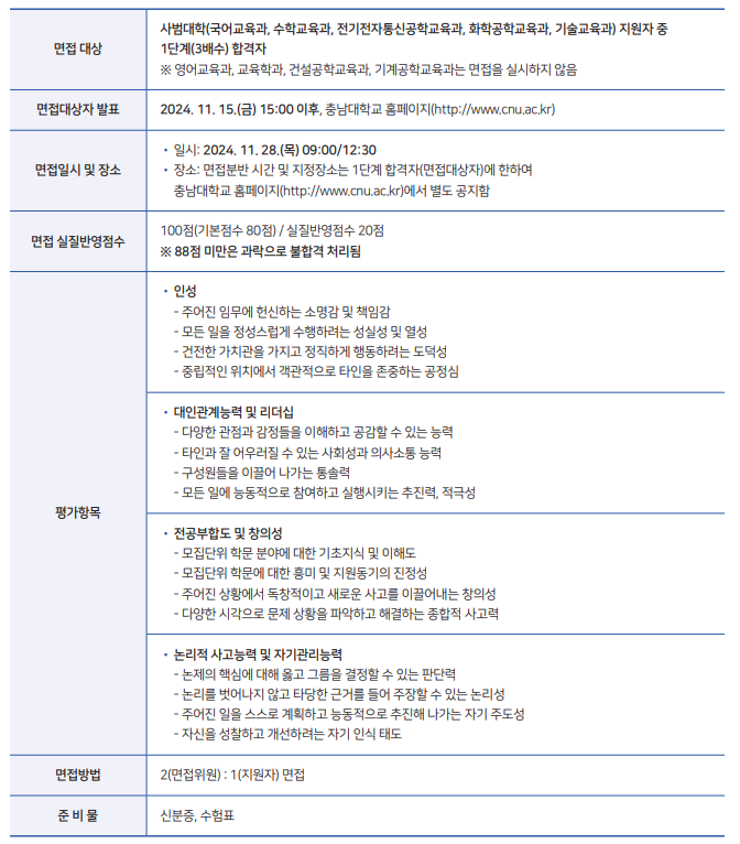 마) 아래의 산출방법에 해당하지 않는 경우 ‘충남대학교 대학입학전형관리위원회’심의를 통해 별도의 방법으로 성적을 산출함