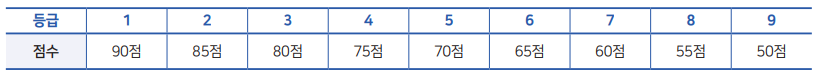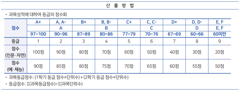 다) 전 학년 과목점수: Σ(과목등급점수)÷Σ(과목단위수)