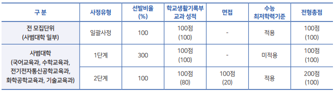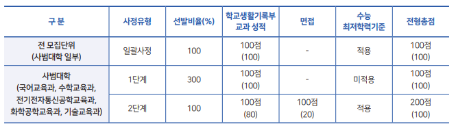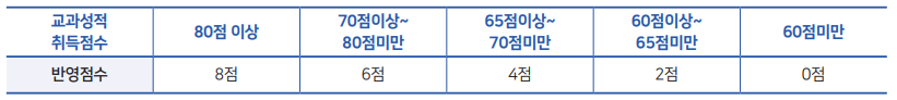 ※ 본교 학교생활기록부 반영방법에 따라 교과성적이 산출되지 않는 고등학교 출신자는 본교 홈페이지에 공지된 별도의 교과성적 이수 확인서를 제출하여야 함