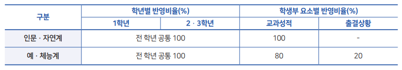 ※ 국외고 출신자의 경우 학교폭력 조치사항을 반영하지 않음
