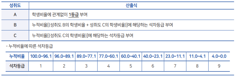 2) 2007년 2월 이전 졸업생은 과목석차를 우선으로 반영하며, 석차가 없을 경우는 평어를 반영함