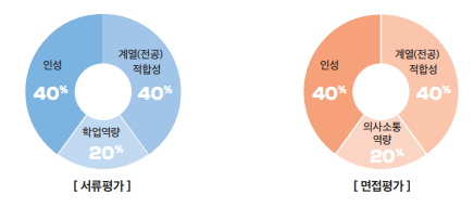 학생부종합 전형 1단계: 서류 100%(4배수) 2단계: 1단계 평가 50% + 면접 50% |