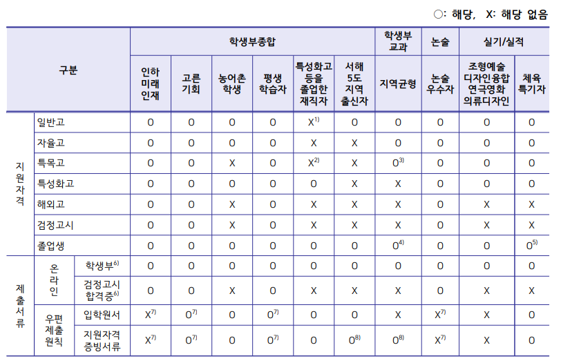 3) 특목고 중 예술고, 체육고, 마이스터고 출신자 지원 불가