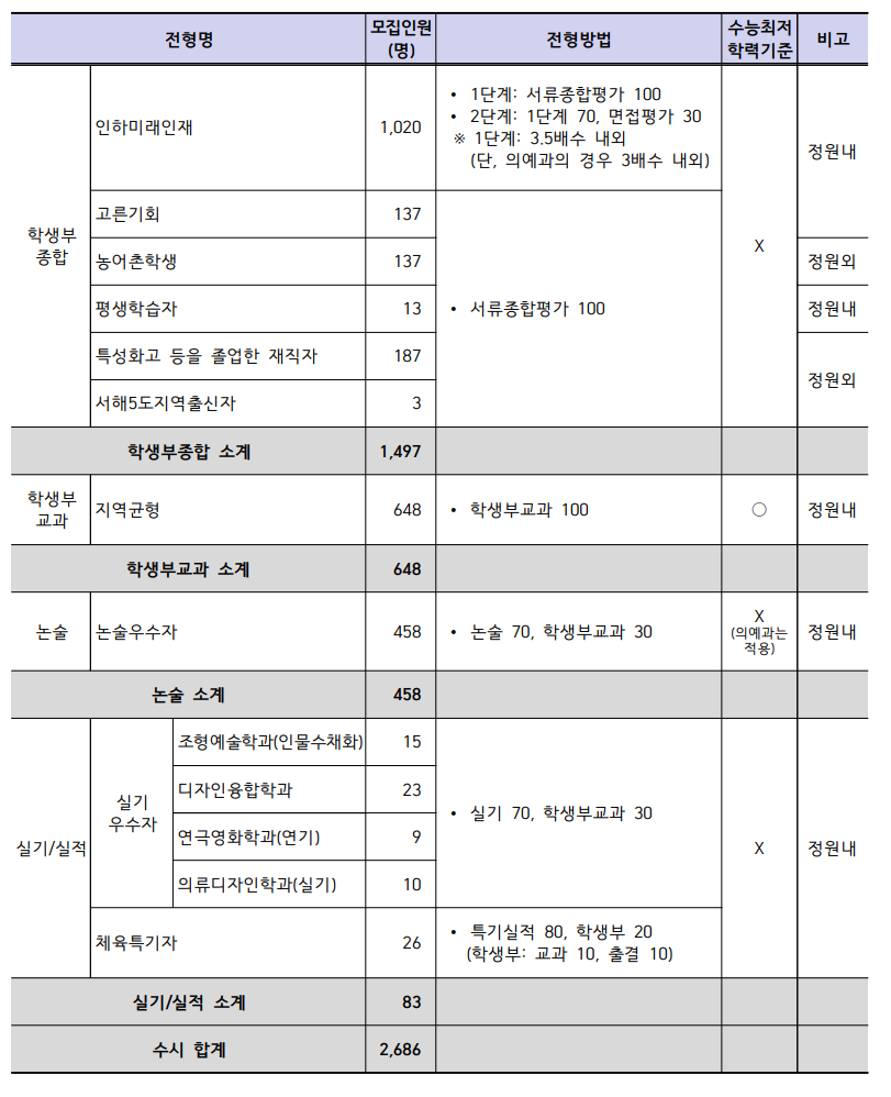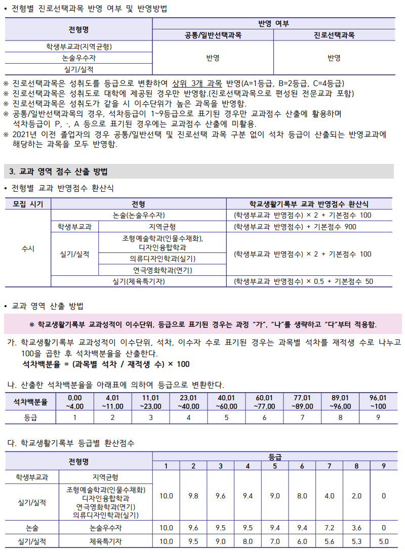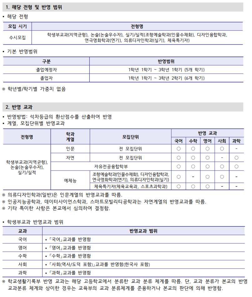 ※ 상기 사항은 관계 법령 제·개정, 학과 개편 및 정원 조정 등에 따라 변경될 수 있음.